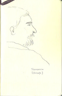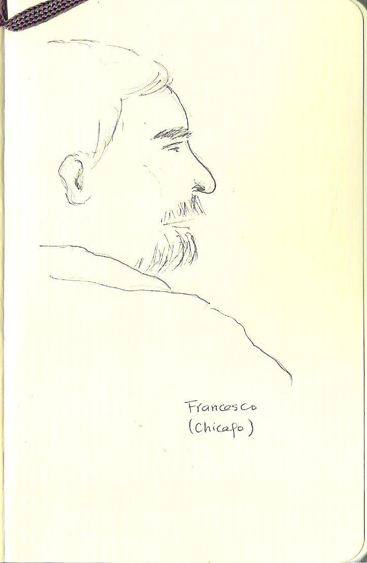 Tentativa de guardar um registo do múltiplo rendilhado dos terraços do Duomo de Milão. Tinta da China.
