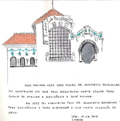 Publico os primeiros desenhos feitos na manhã de sábado. Depois de um belíssimo pequeno almoço no Café/Restaurante Cor de Tangerina seguimos um itinerário que nos foi previamente fornecido e o tema era desenhar pormenores da cidade ao longo desse percurso. Deveríamos também deixar, facultativamente, alguns registos escritos.