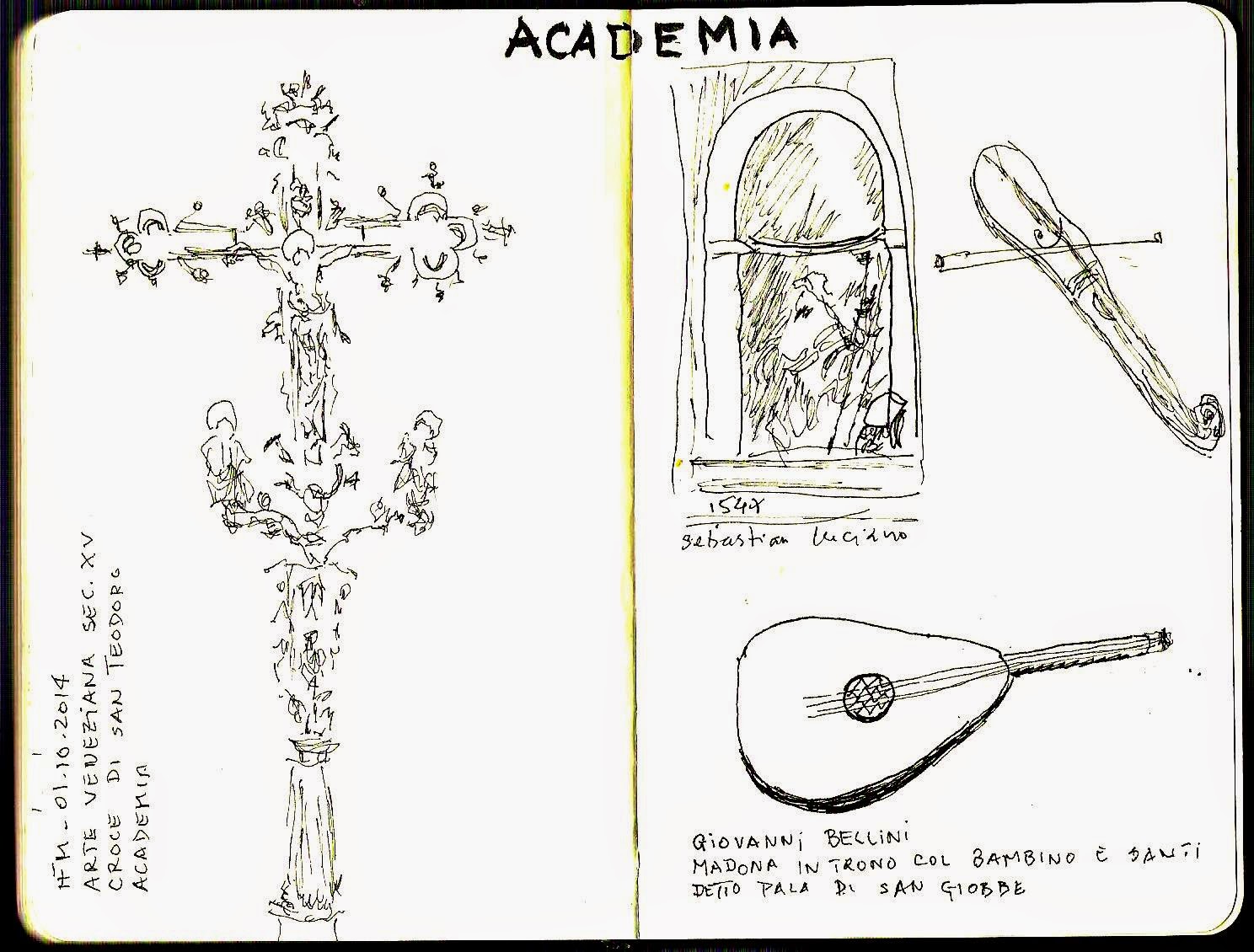 Uma dupla página feita no Moleskine de bolso. Primeiro dia em Veneza. Foi só largar as malas no Hotel e fomos visitar o Teatro de La Fenice. Depois pelas pequenas ruas dirigimo-nos para San Marcos e fomos revisitar aquela maravilhosa Catedral. Quando saímos sentei-me junto à laguna, primeiro a ver e depois apenas a fazer rabiscos, o encantamento era grande e o olhar andava perdido e vadio.