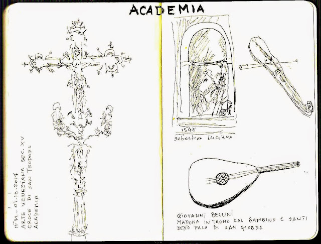 Na belíssima igreja de Santa Maria dei Frari fui encontrar na cripta e, a meu ver muito mal exposta, esta Pietá. Tinha uma força magnífica e é de um escultor contemporâneo - Giuseppe Tito. Tocou-me tanto que tive mesmo de a desenhar.